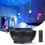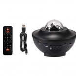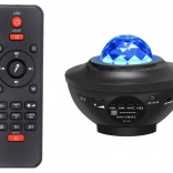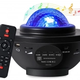 The device has a built-in Bluetooth speaker (also supports a USB flash drive), so you can easily sync light with music. With the remote control, you can switch modes, tracks, and set a 1–2 hour timer. The projector can be placed on a surface or hung on a wall/ceiling, and thanks to its non-slip feet, it stays stable on furniture.