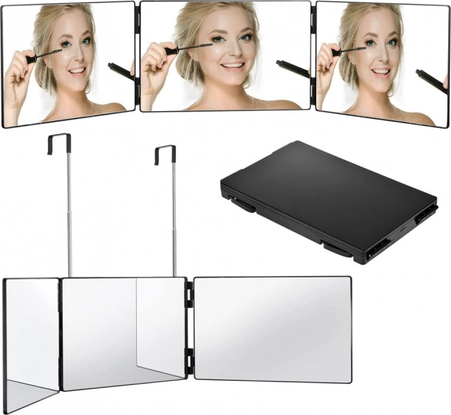 Ce miroir pliable multifonctionnel à trois panneaux est conçu pour être adaptable et pratique. Suspendre-le sur une porte ou un mur selon les besoins pour obtenir n'importe quel angle de réflexion.