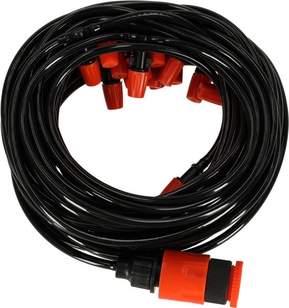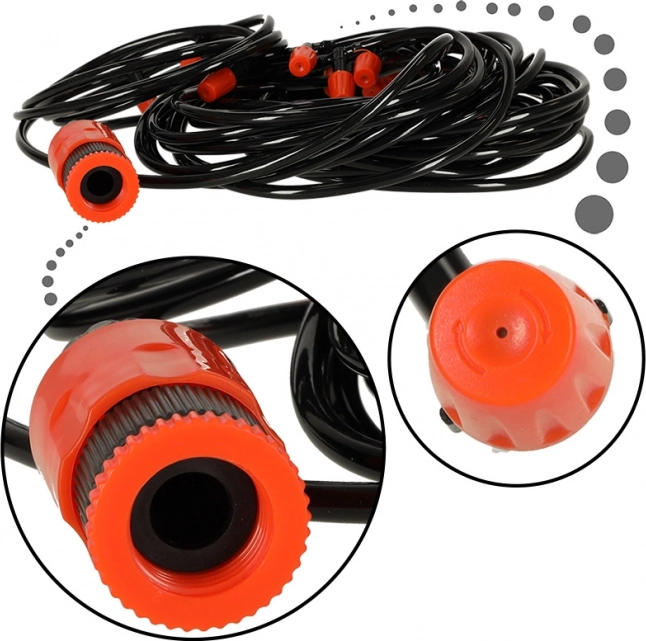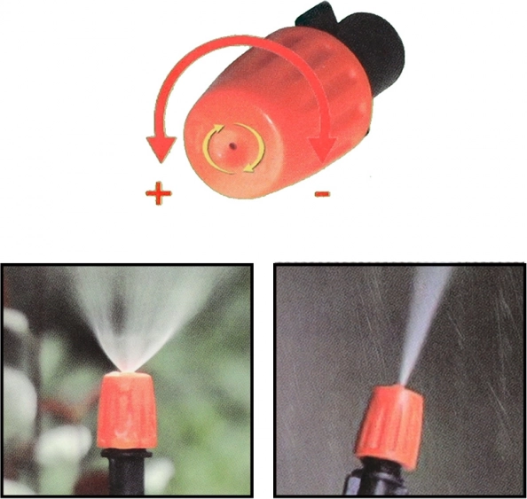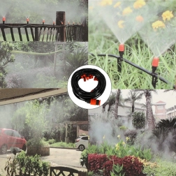 Grâce au système de buses en plastique, vous pouvez facilement contrôler l'intensité et le diamètre de la brume, vous donnant un contrôle total sur le microclimat de votre jardin.