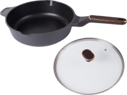 Poêle antiadhésive spacieuse avec couvercle 4,2 l en aluminium coulé pour la cuisine quotidienne. Offre un chauffage rapide et uniforme, un couvercle en verre avec valve vapeur et une prise en main sûre et ergonomique. Compatible avec l’induction, le gaz, l’électricité et la vitrocéramique, elle permet de frire, cuire et mijoter avec moins de matière grasse.