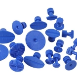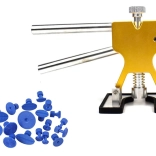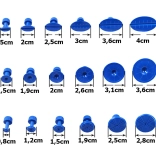 Le pack comprend 18 embouts de différents diamètres et formes pour les petits points comme les bosses plus larges. Les embouts se collent avec une colle thermofusible de 7 mm de diamètre puis, à l’aide de l’extracteur, la bosse est délicatement tirée. La construction de l’outil en métal et plastique résistant garantit une longue durée de vie et une grande stabilité au travail.
