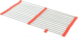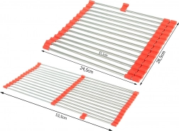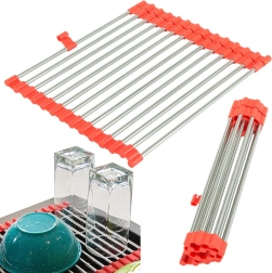 L'égouttoir enroulable pour évier est un accessoire pratique pour chaque cuisine. Grâce à ses bords en silicone, il s'adapte facilement à tout évier et offre une surface de travail élargie. Sa structure complètement déployée comprend 18 tiges en acier, assurant une stabilité suffisante même pour des contenants plus lourds.