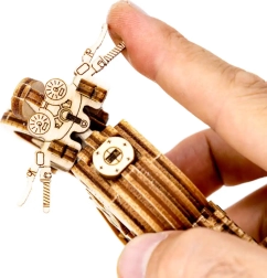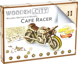 La moto Café Racer de WOODEN CITY est un modèle en bois minutieusement conçu à l’échelle 1:16, qui donnera vie à votre bureau ou vitrine. Grâce au moteur à élastique et au mécanisme de rappel, le modèle se déplace en avant et en arrière, atteint environ 1 mètre et offre une vue sur la mécanique réelle des engrenages.