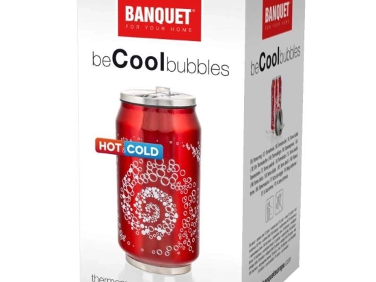 Thermos BE COOL BUBBLES 300 ml. Corps à double paroi en acier inoxydable : intérieur 18/8, extérieur 18/0, couvercle : acier inoxydable 201 / PP / PS, ouverture pour boire / joint en silicone, paille en plastique PE.