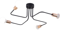 Cette lampe de plafond moderne de style industriel associe le noir à des accents dorés pour offrir un contraste saisissant. Les quatre sources lumineuses sur des articulations façonnées assurent un éclairage uniforme d’environ 20 m², idéal comme éclairage principal pour un grand salon ou une salle à manger.