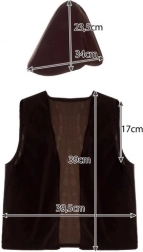 • SPÉCIFICATIONS - taille : universelle ; matériau : polyester ; couleur : marron ; à partir de 3 ans ; dimensions du gilet : 23,5 x 39,5 x 39 cm ; dimension du chapeau : 53,5 x 34 ; poids : 54 g ; poids de l’emballage :