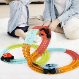 Construisez votre propre circuit de course jusqu’à 4,8 m à partir de 192 pièces flexibles et lancez-vous dans des boucles folles, des inclinaisons et des virages ! Inclus : une voiture LED à piles avec carrosserie interchangeable (rouge ou bleu). La piste est facile à assembler, colorée et développe à merveille la créativité, la motricité et l’imagination des enfants.