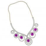 Une tiare argentée ornée de pierres roses, un collier assorti et des boucles d’oreilles apportent un éclat enchanteur à chaque tenue. Deux bagues complètent l’ensemble dans les moindres détails.