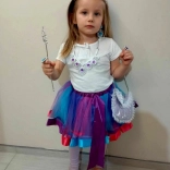 • Équipement complet – jupe, couronne, sac à main, baguette, collier, boucles d’oreilles, 2× bague.