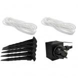 Structure en polyester avec indice de protection IP44, résistante aux conditions hivernales. Le paquet contient des haubans, des piquets et un adaptateur d’alimentation pour un ancrage et un fonctionnement en toute sécurité.