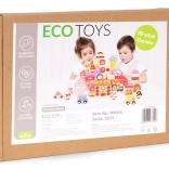 Créez une ville gourmande pleine de glaciers, de pâtisseries et de jolis détails. Les blocs en bois colorés avec des motifs de nourriture, de chiffres et de lettres favorisent l’apprentissage par le jeu – en construisant, les enfants entraînent naturellement la reconnaissance des formes, des couleurs et des symboles.