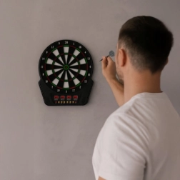 La cible électronique de fléchettes TRIZAND est un excellent choix pour débutants comme confirmés. Sa construction robuste et la détection précise des impacts garantissent des résultats équitables, tandis que les écrans LCD affichent clairement le déroulement de la partie et les scores des joueurs et des équipes. Avec 27 jeux intégrés et jusqu’à 243 configurations, vous ne vous ennuierez jamais.