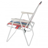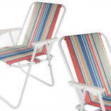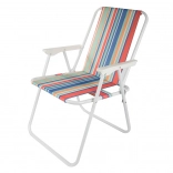 La chaise se déplie sans outils — il suffit de l’ouvrir et l’assise confortable avec accoudoirs est prête. Son motif rayé polyvalent apporte une ambiance estivale à vos sorties camping, sessions de pêche, pique-niques et moments de repos sur le balcon.