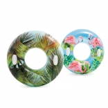 Son matériau résistant de 0,25 mm d’épaisseur supporte très bien un usage courant à la piscine comme en bord de mer. Grâce à ses motifs tropicaux avec feuilles de palmier ou flamants roses, la bouée attire le regard et apporte un style frais à votre équipement d’été.