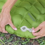Les poches d’air inclinées stabilisent le corps, limitent le glissement et offrent du confort toute la nuit. L’épaisseur de 6,5 cm amortit les irrégularités du terrain.