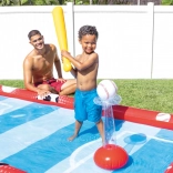 Le centre de jeu aquatique gonflable INTEX Action Sport transforme votre jardin en parc sportif amusant. Il inclut des activités de volley, de football et de baseball, permettant aux enfants d’alterner facilement et d’entraîner coordination et motricité. Grâce aux parois gonflables souples et à une structure stable, le jeu est sûr et confortable.