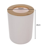Légère et résistante, la poubelle en PP avec couvercle en bambou possède une grande ouverture circulaire qui maintient le sac en place et facilite l’usage au quotidien.