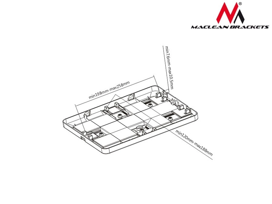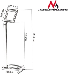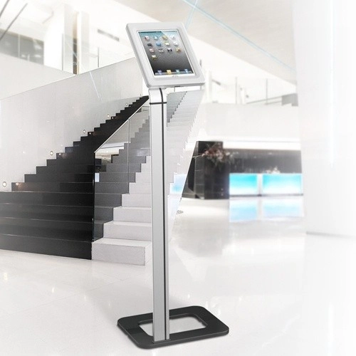 La compatibilité avec une large gamme de tablettes (p. ex. Apple iPad, Samsung Galaxy Tab, Goclever) aux dimensions comprises entre 198 × 120 × 7,6 mm et 258 × 188 × 10,5 mm garantit une utilisation universelle. Grâce à la possibilité d’ancrage au sol, aux ouvertures de ventilation et aux passages pour haut‑parleurs, le support est un excellent choix pour des points d’information, guides virtuels, kiosques d’enquêtes, catalogues produits ou systèmes d’accès.