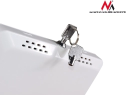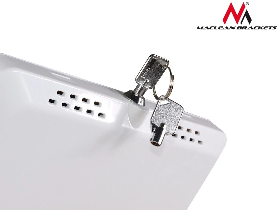 Structure robuste en métal et plastique avec serrure de sécurité protégeant la tablette contre le vol et les dommages. Deux clés incluses pour une gestion aisée.
