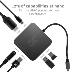 Maximisez la connectivité avec une seule solution. Le GREEN CELL 6‑en‑1 ajoute tout ce dont vous avez besoin : transfert rapide via USB 3.0, réseau stable grâce au Gigabit Ethernet, image nette avec HDMI jusqu’en 4K et charge simultanée via USB‑C Power Delivery jusqu’à 87 W. Parfait pour les ultrabooks comme APPLE MacBook, DELL XPS, ASUS ZenBook, LENOVO ThinkPad et autres appareils dotés d’un port USB‑C.