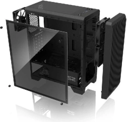 Panneau latéral en verre de 4 mm sans cadre mettant en valeur vos composants et éléments RGB. Accès facile grâce à quatre vis moletées.