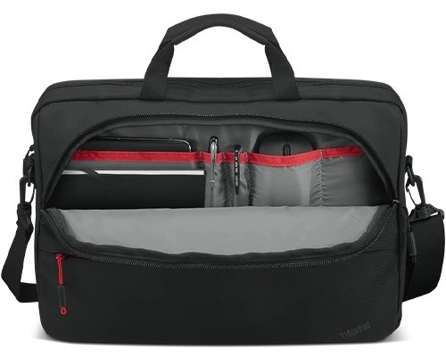 La sacoche ThinkPad Essential Plus 16 Topload (Eco), pratique et élégante, offre une protection fiable pour un ordinateur portable 16", une organisation astucieuse des accessoires et un port confortable grâce à son intérieur rembourré, sa sangle réglable et sa conception robuste.