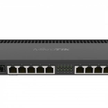Le MikroTik RB4011iGS+RM est conçu pour un usage professionnel avec un processeur quadricœur Cortex A15 et 1 Go de RAM, permettant un traitement efficace des données même sous forte charge. Son châssis compact en métal au fini noir mat est adapté au montage en rack, ce qui facilite son intégration dans les réseaux existants.
