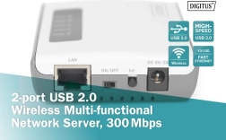 Serveur USB sans fil multifonction Digitus 2.0, 300 Mbps