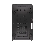 Dimensions de 373 × 440 × 211 mm avec emplacement pour cartes ATX et stockage : 3× 2,5" ou 1× 3,5" + 2× 2,5". Le panneau latéral en acier protège les composants et conserve une allure élégante.