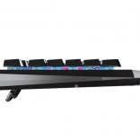 Un rétroéclairage RVB spectaculaire avec 11 modes permet d’ajuster la vitesse et l’intensité des effets. En mode utilisateur, choisissez l’un des 8 tons RVB prédéfinis pour 7 zones indépendantes afin d’harmoniser le clavier avec votre setup gaming. La stabilité est assurée par des patins antidérapants en caoutchouc et des pieds rabattables pour un angle de frappe optimal.
