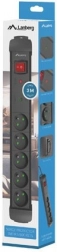 Protection contre les surtensions Lanberg avec 5 prises, câble de 3m, noir