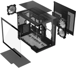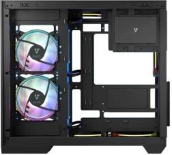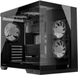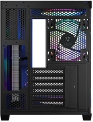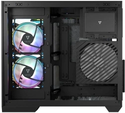 Volcano Panorama Apex ARGB Midi est conçu pour répondre aux besoins des assembleurs modernes. Grâce au panneau en verre trempé, vous mettez élégamment en valeur vos composants, tandis que la structure à double chambre assure la séparation de l’alimentation et une gestion propre des câbles.