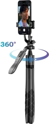 SelfieGo Ultra est une perche à selfie moderne avec fonction trépied, idéale pour les vloggers, YouTubers et tous ceux qui souhaitent enregistrer des vidéos et prendre des photos à un niveau professionnel. Grâce au support de stabilisation intégré avec verrouillage, vous pouvez faire pivoter le téléphone autour de son propre axe à 360 degrés.