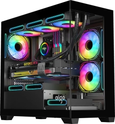Le design minimaliste sans montant vertical avec deux panneaux transparents en verre trempé permet une présentation unique des composants internes.