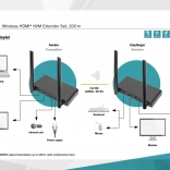 L’extendeur HDMI KVM sans fil transmet la vidéo et l’audio en Full HD (1080p) à 60 Hz jusqu’à 200 mètres en visibilité directe et offre le contrôle clavier et souris (KVM) sur le récepteur. Grâce au HDMI Loop-Out, vous pouvez visualiser simultanément le signal sur un écran local, et l’Auto‑Pairing assure une mise en service facile sans configuration complexe.