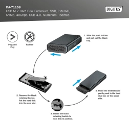 Le boîtier pour disques offre une large compatibilité avec des modules M.2 de différents formats (2230, 2242, 2260 et 2280) et une capacité maximale de 8 To, assurant un espace suffisant pour tous vos fichiers et données. Grâce à la technologie USB 4.0, le transfert de données atteint 40 Gb/s, garantissant une utilisation fluide et des copies efficaces.