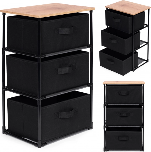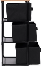 L’étagère comprend trois paniers amovibles en textile résistant, adaptés au rangement de vêtements, livres, jouets et autres objets, avec un accès facile grâce aux poignées pratiques.