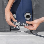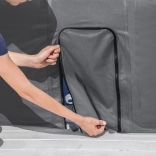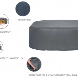 Le matériau résistant DuraPlus est conçu pour une utilisation extérieure à long terme – il est imperméable, dimensionnellement stable et facile à entretenir. L’ouverture zippée permet de raccorder une pompe intégrée ou externe sans retirer la couverture, pour une maintenance simple et rapide.