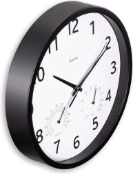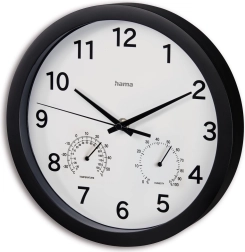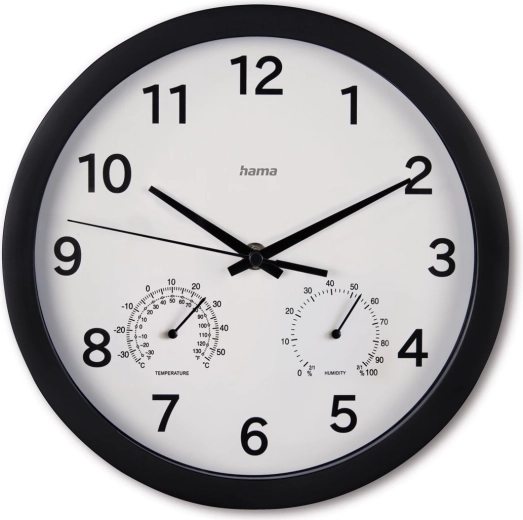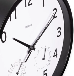 Horloge murale Hama Malta qui combine fonctionnalité et style avec un mécanisme silencieux, un thermomètre intégré et un hygromètre. Idéale pour chaque pièce.