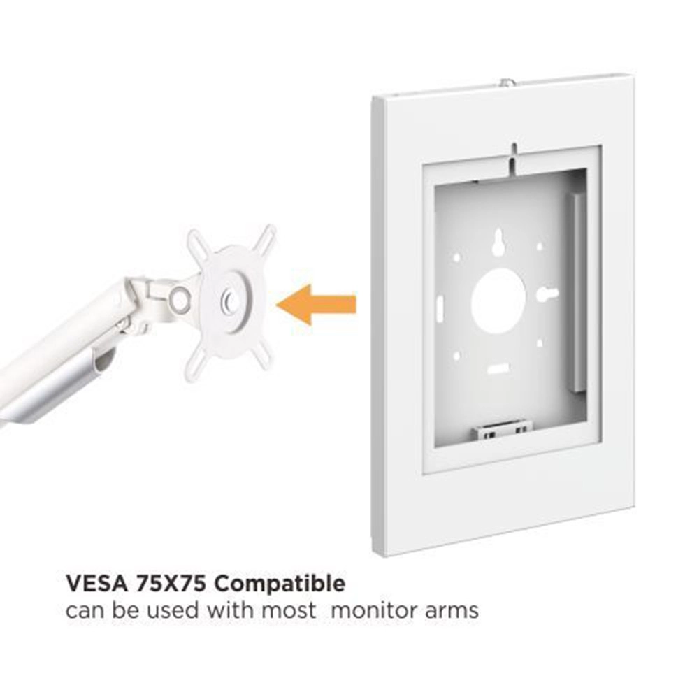 Le support mural pour tablette MC-474W est le symbole de la plus haute qualité et sécurité. Sa conception bien étudiée protège votre appareil contre les dommages et offre un niveau de sécurité maximal. Il permet une installation facile sur les murs ou sur des supports compatibles avec la norme VESA 75x75.