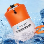 Cette bouée de natation type dry bag combine sécurité et rangement pratique en un seul produit. Le matériau PVC résistant, la fermeture roll-top avec boucle et la valve de gonflage séparée gardent vos effets au sec et la bouée bien gonflée. Sa couleur vive accroît nettement la visibilité pour les bateaux et les autres nageurs.