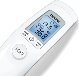Le thermomètre médical FT90 de Beurer permet une mesure sans contact de la température corporelle, ainsi que de la température ambiante et des surfaces. Les valeurs mesurées sont faciles à lire grâce à l’écran XL rétroéclairé. Pour plus de confort, les résultats sont accompagnés d’émoticônes.
