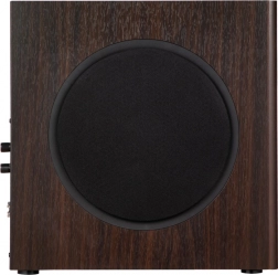 La construction robuste en MDF de 18 mm minimise les résonances, tandis que la finition bois marron assure une esthétique soignée. Les entrées et sorties RCA garantissent une large compatibilité avec d’autres appareils.