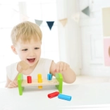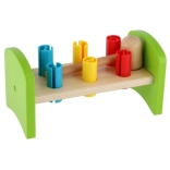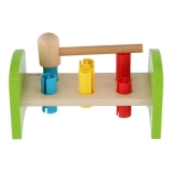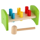 Marteau en bois avec maillet dans des couleurs vives est un jouet idéal pour développer la motricité fine. L'emballage comprend un marteau stable et basculant avec maillet et 6 chevilles colorées.