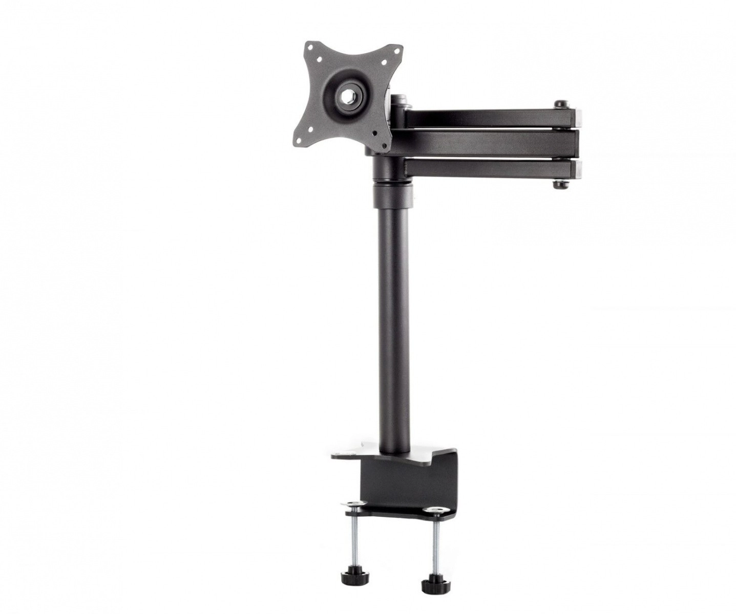 Le double bras à articulations multiples permet d’orienter, d’incliner et d’étendre l’écran rapidement. Grâce à la compatibilité VESA 75×75 et 100×100, l’installation est simple et rapide. Un système de gestion des câbles est également inclus pour maintenir un poste de travail ordonné et esthétique.