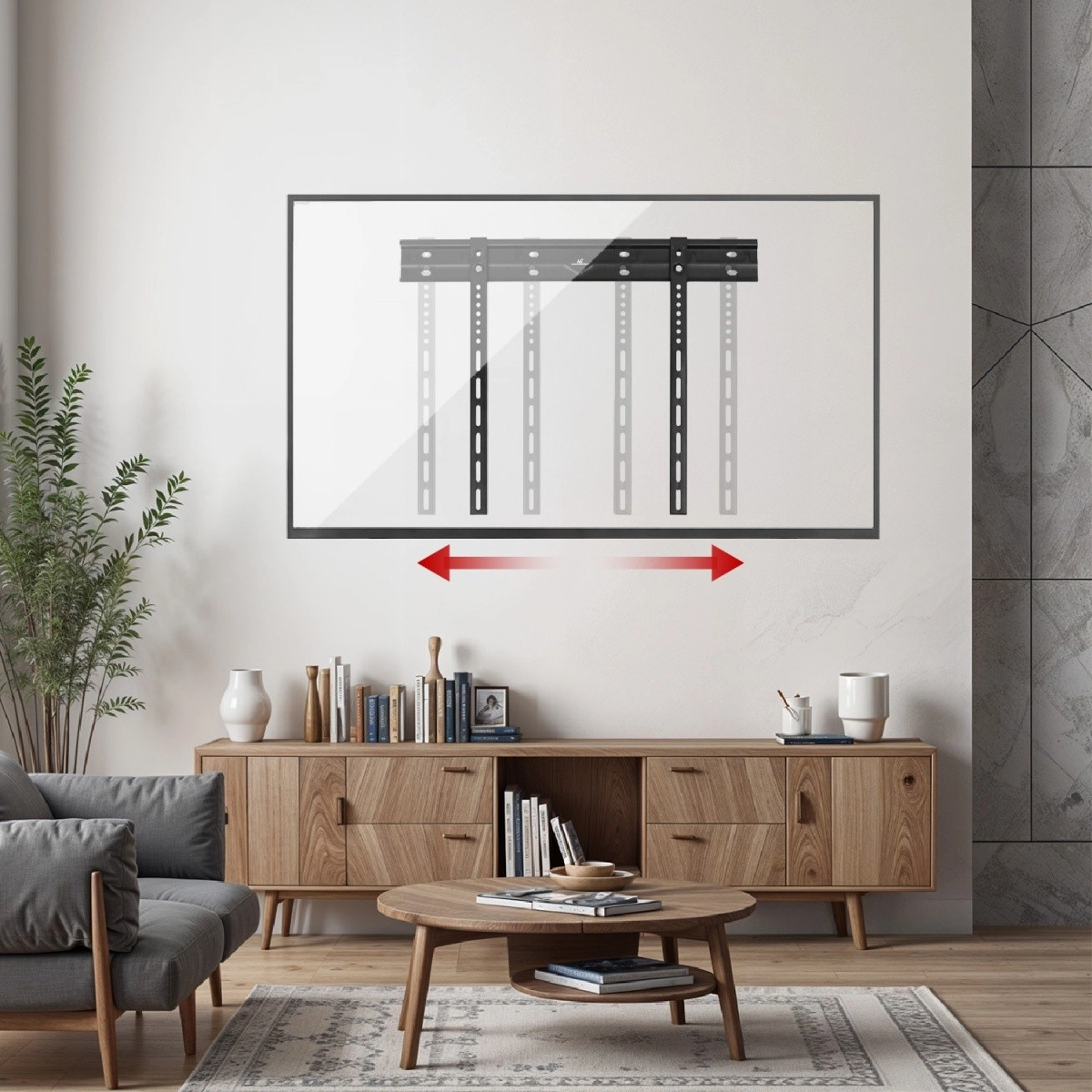 Look minimaliste et effet encastré de la TV. Idéal pour les intérieurs modernes, où vous souhaitez des lignes épurées et un minimum d’éléments visibles.