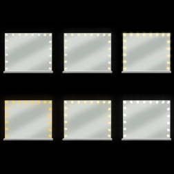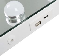 La double alimentation pratique (USB et 230 V) facilite l’installation dans la chambre comme dans un salon de beauté. Le miroir peut être posé sur une coiffeuse ou accroché au mur. Son design hollywoodien élégant apportera du style à votre intérieur et soutiendra votre routine beauté quotidienne.