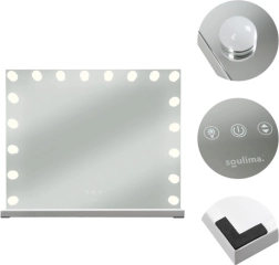 Découvrez un maquillage professionnel dans le confort de votre maison. Le miroir cosmétique SOULIMA avec 18 ampoules (108 LED) offre un éclairage homogène et lumineux sans ombres. Grâce au panneau tactile, vous passez facilement entre 3 couleurs de lumière (chaude, neutre, froide) et réglez en continu la luminosité selon le moment de la journée et l’environnement.