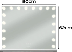 Ses généreuses dimensions de 80 × 62 cm assurent une vue confortable de l’ensemble du visage et de la coiffure, tandis que la structure stable en matériaux de qualité (verre, fer, MDF, PC) garantit une longue durée de vie. Il comprend également un miroir grossissant 10× à ventouse pour les détails précis – sourcils, eyeliner et soins de la peau.