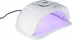 La lampe UV/LED professionnelle pour ongles SUN X10, avec une puissance de 280 W et 45 LED, assure un durcissement rapide et uniforme des vernis gels, gels et acryliques. Elle propose un minuteur 10/30/60/99 s, un capteur de mouvement pour un démarrage automatique et une alimentation secteur pratique.